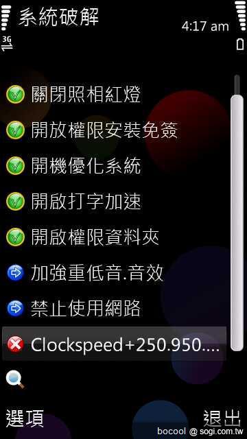 PhoNetInfo/免費/2.8.0/S60-需簽名/手機資訊偵測軟體/訊6/2010101Clockspeed 250.950.950.950 MHz_DANGEROUS.rmp是HxPacher用來超頻的補丁不過複製到RomPatcher後不能啟動昨天突發奇想竟然成功的將它啟動了 = =我的RomPatcher版本是2.5的還有Power.dll是I8910的*方法如下:1.複製出兩個相同補丁 並且將另外一個命名為Clockspeed 250.950.950.950 MHz_DANG..........恕刪