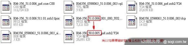 V大....如圖所示....^^,,,像我說的那樣嗎???檔名和版本要一樣嗎????那我下載了一個檔案RM-356_52.0.007_prd.rofs2.V01,,只要把上圖的RM-356 50.0.005_prd.rofs2.V24換掉就行了嗎???謝謝V大...............恕刪