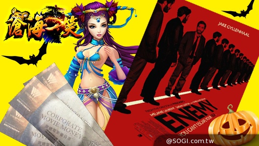 萬聖節來臨前,每個伺服器綜合戰力排名前三的俠士都將得到全台灣通用電影票 2 張!萬聖節《滄海一笑》請你看大片「令人期待的雙面危敵」和「驚悚片屍城」都是不錯的選擇哦!
