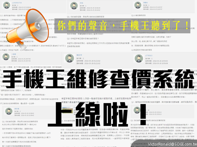 作者:老王你的手機曾經壞過電池或是摔破過螢幕嗎? 想維修但是對價格不了解,找了店家維修卻又付了冤枉錢? 還記得手機王在去年徵集大家的維修經驗嘛 (你的不爽!我來改進!分享維修經驗抽手機),我們看了各式各樣、五花八門的經驗分享,尤其是令人滿肚子怨氣的維修經驗後,從現在開始,你不用再擔心了,透過手機王新推出...