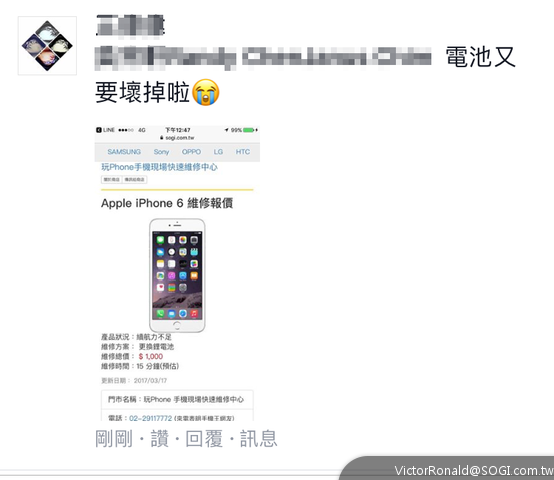 步驟二: 從維修查價系統選擇你最常用到的維修項目並截圖下來,至手機王粉絲專頁活動貼文留言上傳截圖