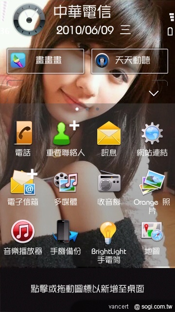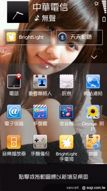 2.使用Orange Tsunami會使"首頁畫面佈景主題"中的"聯絡人列"無法運作,請斟酌使用