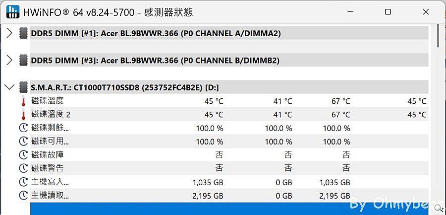 一般待機大約45度左右,測試時最高會到67度,雖然溫度比起其他ATX主機板測試結果略高,但70度內皆為SSD正常運作溫度,Gen5極速SSD溫度能壓在67度也算是不錯的成績了,發熱量控制在不錯的水平。