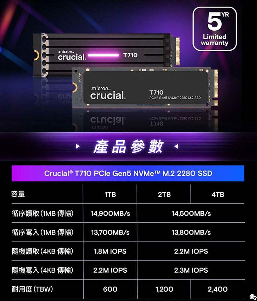 一路看著美光Gen 5 NVME SSD產品,從T700逐步推出新款到現在的T710...照這速度...T800終結者應該也不遠了吧!?