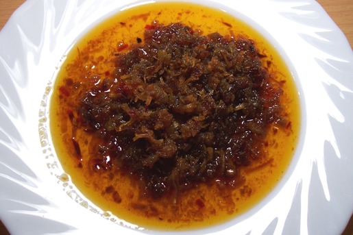 XO醬主要材料: 干貝(江瑤柱), 蝦米, 辣椒, 火腿, 蠔汁, 豆油, 蔥頭, 蒜,....搭配獨家秘方