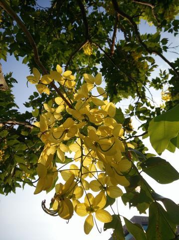 沿路走著,沒想到這個季節還有阿勃勒,在逆光下的黃花,顯得格外層次分明,也帶出一點花的意境。