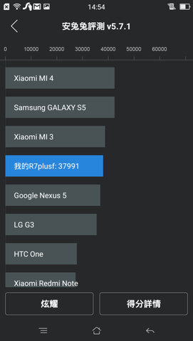 37991的分數,優於Google Nexus 5呢!卻也只略遜於剛上市不久的Samsung Glaxy S5,看來挺有問鼎旗艦機市場王者的氣勢。