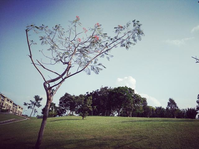 換換視角,蹲低到草地,把相機和地面平行,由小見大的概念。