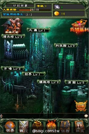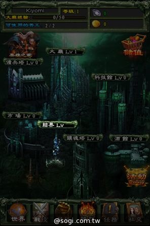 在遊戲一開始,先選擇自己喜愛的種族創建角色,進入主城堡(不同種族的城堡風格不同,還蠻特別的)。