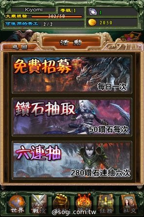 此外,遊戲內每天都有免費抽英雄卡牌的機會!至於能抽到幾星的卡牌,那就要看個人的人品啦!(招募系統於活動或酒館內)