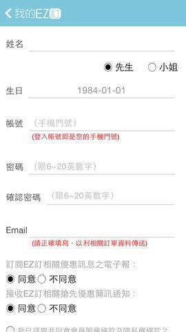 最主要是,要先註冊成為會員,他是用手機號碼當作帳號,填入基本的姓名、生日和E-mail,再設定密碼就好,完全不需要身分證字號或地址之類的啊。