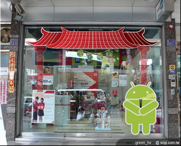 - 北港文化直營門市:結合北港朝天宮建築特色,由 Android 小綠人擔任小導遊,讓消費者沉浸在台灣百年媽祖民俗文化中,順手體驗現代智慧型手機的便利。