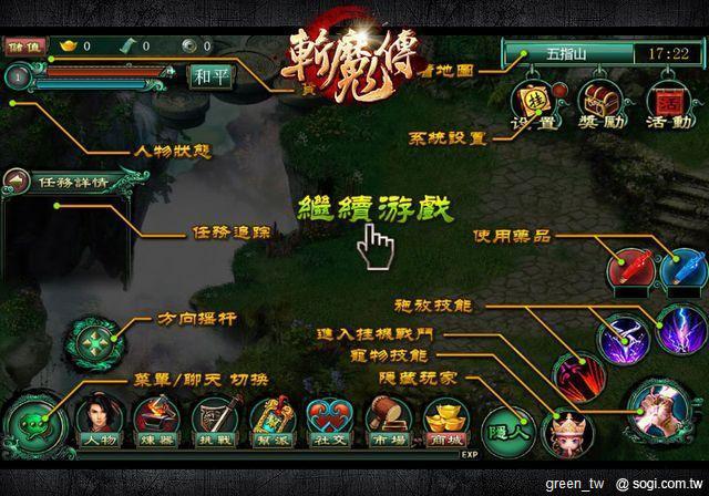 通常一般動作角色扮演的操作,必須以雙手持有裝置,像是操控遊戲握把一樣才能進行遊玩,而《斬魔傳》除了有相同操控的概念外,更提供一指點擊方式,即可控制角色自動攻擊,對於玩家而言這真是再方便不過的了!
