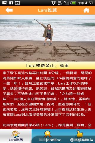 ▲在「誰來推薦」功能中,有 Lara、黃騰浩及部落客推薦各地知名景點哦。除了點選景點有詳細介紹外,還可點選熱門影音觀看動態介紹哦。