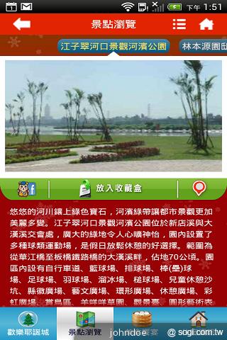 ▲「景點瀏覽」先依區域做選擇,再挑選感興趣的景點查看其詳細介紹內容,同樣提供路線規劃,可收入收藏盒,更可將喜愛的景點透過 facebook 分享給好朋友知道哦。