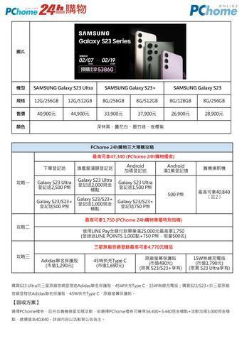 - PChome 24h購物【 Samsung Galaxy S23 系列新機預購】:
