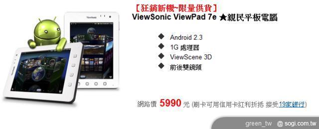 ViewSonic ViewPad 7e 價格資訊-Sogi 手機王