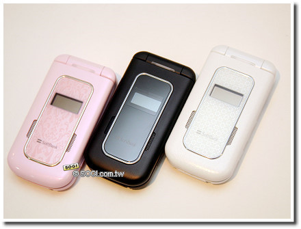 以摺疊造型為主的 810T,之前在日本上市時,針對消費者的多變口味,總共推出了 3 種顏色,包括粉紅、純白和深黑等。設計上比較特別的是,粉紅和白色兩款正面的外殼,不約而同擁有美麗的花紋裝飾,其中,粉紅色是以雕花方式打造、白色則是以一顆顆雪花點綴,能夠增加視覺上的效果。至於黑色款選擇透過鏡面的設計,呈現出優雅的時尚味道。外螢幕的部份,內建長條狀的灰階 OLED,Size 為 0.8 吋,具備一般簡單的顯示功能。