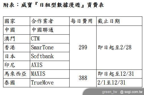 威寶電信表示,在旅遊旺季的春節期間,為滿足消費者在國外行動上網的需求,特別針對最夯的國外旅遊、探親的亞洲地區,提供超彈性的日租型數據漫遊服務,最低只要 299 元起(折扣高達 77 折),消費者就可以隨時隨地上網不用擔心會產生高額的漫遊費用,講得盡興、用得輕鬆,出國前記得申請威寶獨家特惠好康,相關活動辦法請洽威寶全省直營門市或撥打免付費客服專線 0800-66-1234 洽詢。