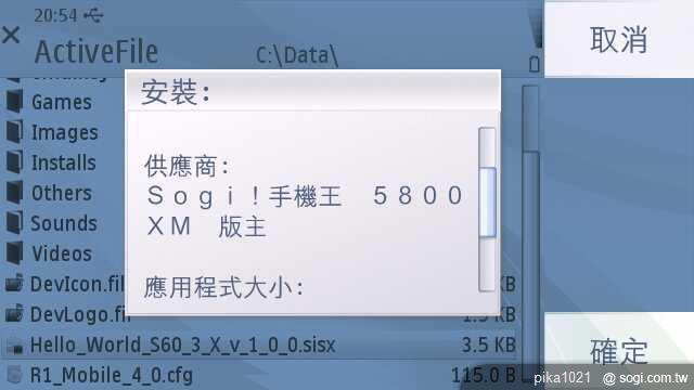 還早得很(笑)不過倒是弄出了點有趣的東西,用非常簡單的C語言安裝Nokia的SDK真的會出人命...軟體名稱:你好!5800!版本:1.00(0)(我還不知道要怎麼改這個)功能:印出文字(而已)截圖:(沒有猜錯,不支援顯示中文,所以會亂碼)(以下是電腦用相同程式碼跑出來的結果)程式語言:C原始碼://--------------前置處理器選項(Preprocessor Code)---------..........恕刪
