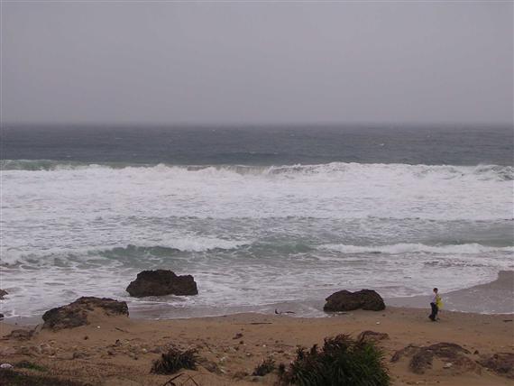 假日無聊,所以去看海浪。風很大,又加上雨一直下,所以好冷