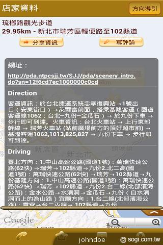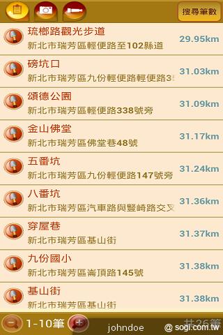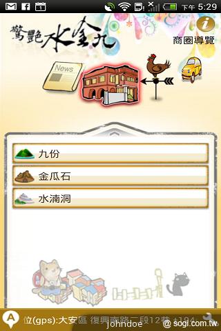 ▲透過 GPS 定位直接查詢「水金九」的沿途景點及商家資訊。