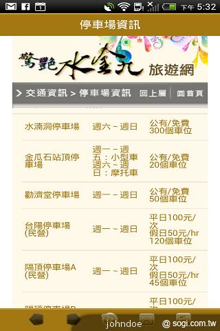 ▲停車資訊裡詳細提供,停車場開放時段、停車費用及實際的相片介紹