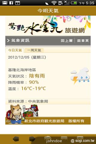 ▲旅遊免不了要了解當地的天氣概況,「水金九」APP 一樣貼心的提供天氣資訊的查詢。