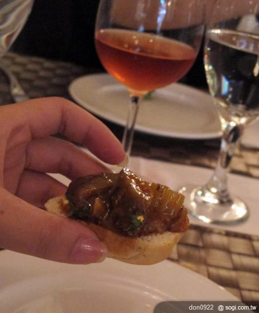 老闆看我臉色鐵青只好拿出他現在喝的粉紅酒給我試試
