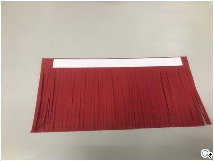 再來我們要做一個流蘇,取一個紅包袋,然後把長的那邊先貼上一層雙面膠,接著開始剪成小間隔