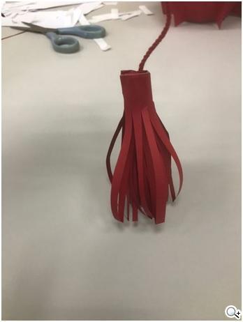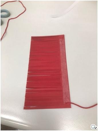 然後撕掉雙面膠,把紅繩黏上去然後開始旋轉,就能做出一個流蘇