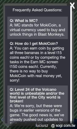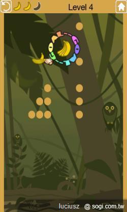 ▲當玩家進行到越後面時,遊戲內的阻礙物與香蕉位置越是考驗玩家腦力,要賺 M 幣可沒這麼容易呢!難怪 Blast Monkeys 一推出後就受到許多好評與歡迎。