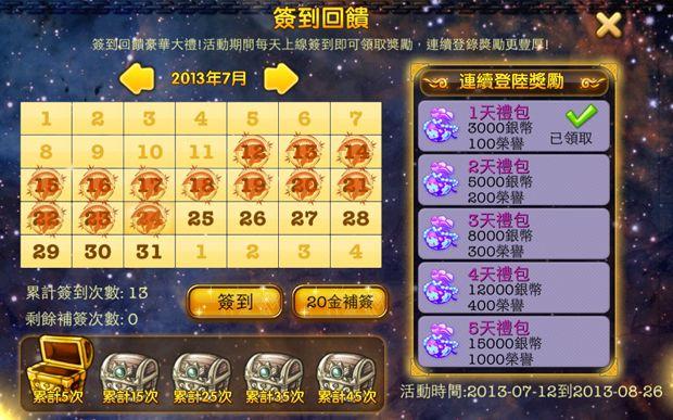 為了鼓勵玩家天天享受遊戲。本次改版也新增了一個簽到系統。只要連續登入遊戲,就可以獲得各式各樣的豐富獎勵。