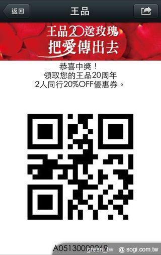 為使「玫瑰傳愛貼圖」蔚為風潮,王品首度釋出 1 萬張 20% OFF 優惠券,只要關注官方帳號的 WeChat 使用者即可獲得抽獎資格;下載玫瑰貼圖還有機會再抽第二人款待券,共計 1,000 名,贈禮總價突破 500 萬現金,更創史上新高!