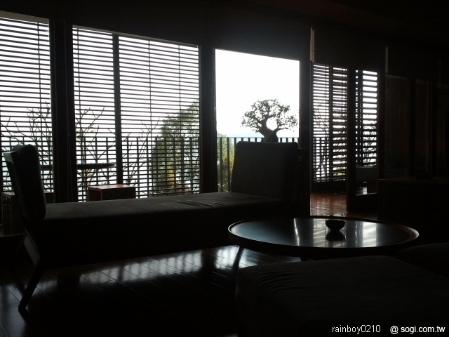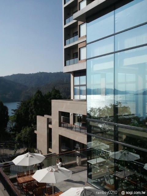 ▲房間外的小陽台除了可以觀看日月潭湖光山色外,還也一些園藝造景的設計,挺清爽的!
