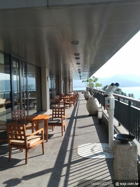 ▲在這邊喝杯咖啡感覺還不錯的!日月潭湖光山色盡收眼底。