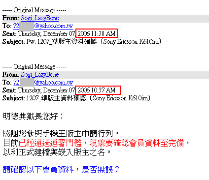當下已經使用現有會員資料做電郵確認。(72.*..........恕刪