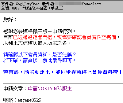 恭喜戀薰(eugene0929),榮膺NOKIA N73版版主囉。