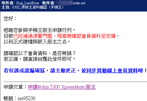 若正確,請直接回覆該信件即可。