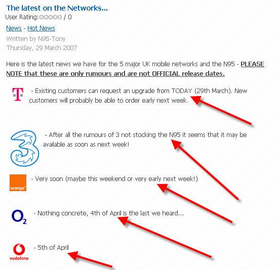 如圖中五個箭頭,各是五家不同業者獲得的訊息,目前最晚的日期是2007/04/05