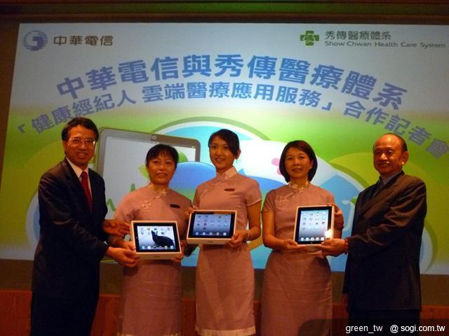 目前秀傳醫療體系應用 iPad 及 iPhone 於護理臨床實務,自行開發多項護理資訊程式,包括:秀傳專業衛教資訊、秀傳醫療體系線上掛號門診表、即時佔床率查詢、護理長值班日誌、病患摘要交班訊息、醫療小組平台、行動 EMR 等,利用 iPad 及 iPhone 回報目前病患狀況。資料不僅可共用,且可同步更新至醫院資訊系統,因此可減少護理人員往返護理站及病房間,使得護理作業更有效率,並提高與醫療團隊成員之訊息交換,在更完善的資訊提供下做出最好的判斷,促進病人安全,改善與病患及家屬之良性溝通。目前秀傳醫療體系正與中華電信合作建置醫療資訊系統雲端服務,同時開發及擴展醫療私有雲之應用技術與經驗,期盼未來能快速複製擴散到其他產業,加速國內雲端運算服務之發展。對此,秀傳醫療體系總裁黃明和也表示:「醫療照護首重時效,透過健康經紀人的行動管理,相信可以讓我們的病患獲得更快速的醫療照護及健康管理。」