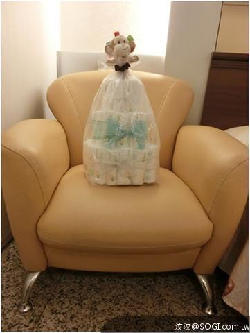 坐月子的時候我會帶自己基本用品過來,不過這邊也會提供,只是出關也帶了很多東西回去,朋友們都會貼心送好多嬰兒用品來,像尿布塔真是實用又可愛,姐妹送的長腳成對抱枕我也好喜歡,而且又能拿來靠著整個好用。