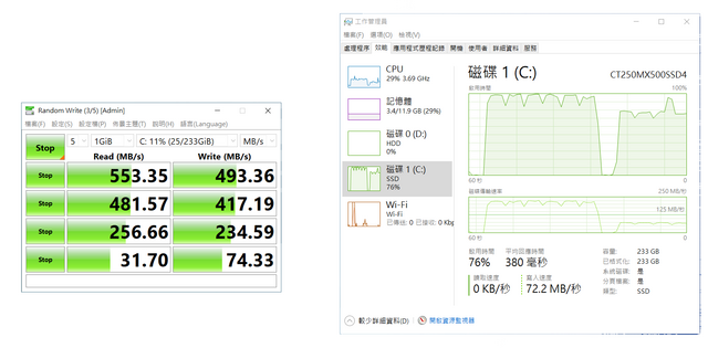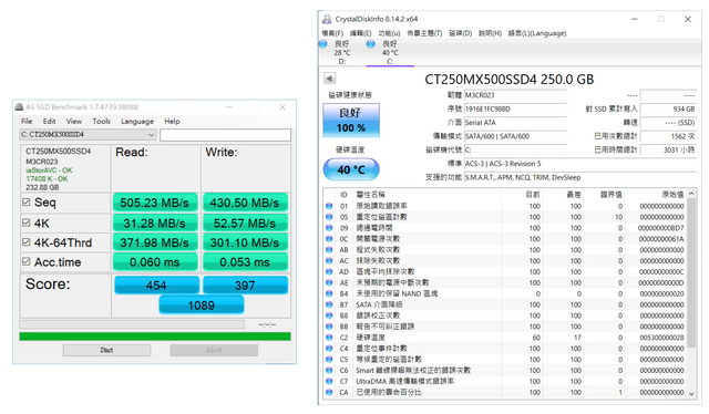 並與原先MX500做個對比