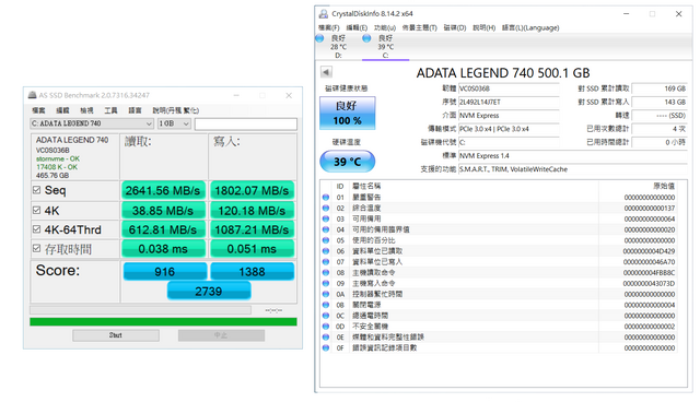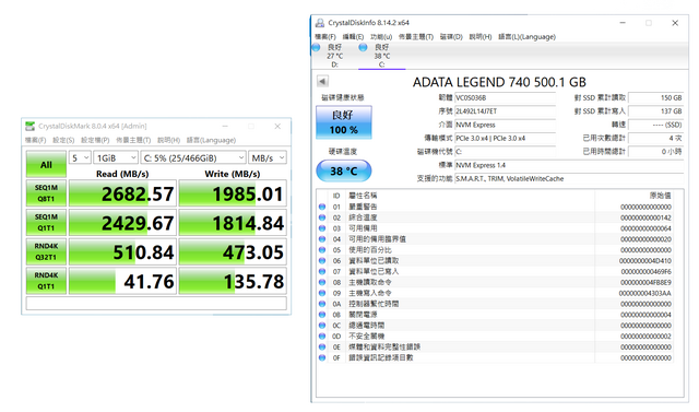 上面為SATA M.2 MX500,下面為ADATA LEGEND 740
