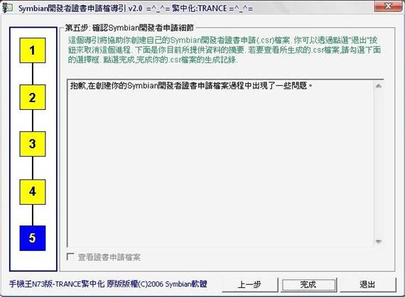 你把T大的手機王N73版-Symbian開發證書製作互助~,看圖說故事,照做一遍,應該是OK,請再試試