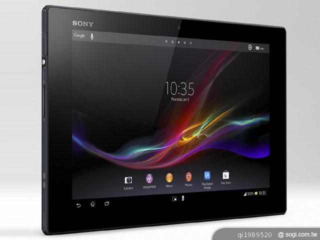 ▲Sony Xperia Tablet Z 配置 10.1 吋、1,920 x 1,200pixels 解析度的 Reality Display 觸控螢幕,採用 Omni Balance 全平衡設計,平板正面則為細緻的圓弧邊角修飾與鏡面設計。