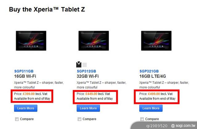 ▲此前,Sony 英國官網就已釋出旗下平板電腦 Sony Xperia Tablet Z 16GB Wi-Fi / 32GB Wi-Fi / 16GB LTE 三個版本的預購頁面,且計劃 4 月中旬出貨。(圖片來源:Xperia Blog)