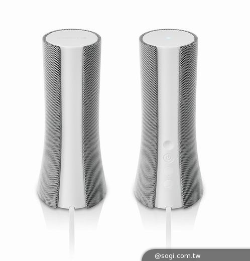 - 可平折的連接線:特別設計的可平折連接線能平整銜接音箱與電源轉接器,從此在您的辦公桌、書桌或檯子上不會再有糾結纏繞的線材。