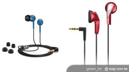 ▲藍色 CX 215 入耳式耳塞 / 鮮紅色的 MX 365。