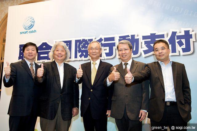▲由左至右分別為,聯合國際行動支付業務部副總經理林明海、副董事長黃政哲、董事長簡仁德、策略長蔡木源、技術長洪嘉勇。
